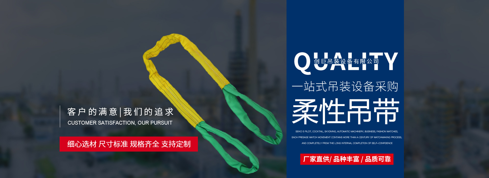 泰州创巨吊装设备有限公司是生产加工吊索具,安全用品的公司,拥有完整、科学的质量管理体系。公司的诚信、实力和产品质量获得业界的认可。现已发展为较具规模的吊索具的生产厂家。在行业内享有较高的度和信誉度。主要产品有:各类柔性吊带、扁平吊带、酸洗吊带系列、吊装牵引绳,复合钢丝绳、链条,各类吊钩、汽车拉紧器、吊索系列、尼龙绳系列、软梯、安全绳网带、钢板夹具,起重吊网系列。本公司采用的工艺,选用材料,严格按国内、国际标准精心组织生产,广泛适用于机械、钢铁、造船、石油、铁路、远洋运输、电力、汽车、化工管道铺设等各行各业的起吊安装。本公司产品获得国家经贸委颁发的《特种劳动防护用品安…